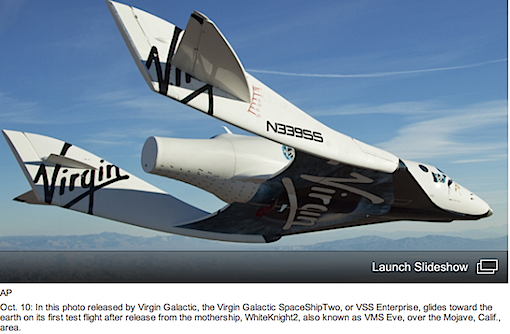 Virgin Galactic社の宇宙旅行実現が近づいてきたな。それにしてもこの宇宙船・・・宇宙航空機か、超かっこいい!Virginのロゴがまたなんとなくこの宇宙船に合ってる!SF映画とかに出てきそうだし。